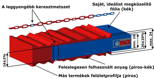 Az új technológia esetén tehát a fenti névlegesen 20 mikronos fólia egy névlegesen 17,5 mikronos fóliával kiváltható. Ha azonban figyelemben vesszük a kedvező szövetszerkezeti változásokat, akkor egy 16 mikronos fólia is tökéletesen helyettesíti a korábbi 20 mikronos fóliát. Az új technológia segítségével tehát körülbelül 25–30% anyagot takaríthatunk meg, s ennek következtében világviszonylatban több millió tonnával kevesebb hulladékkal terheljük a környezetünket.